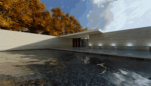 可以看到Enscape的光效非常给力,包括其在进入封闭空间时自动添加室内光线,这就比V-ray的参数和灯具带动光线要方便很多。